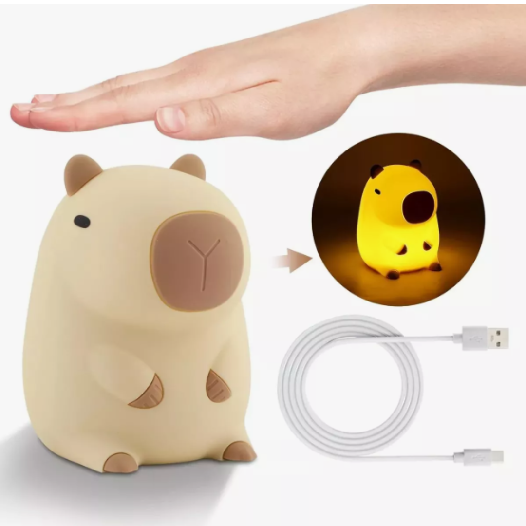 La ternura del animal más relajado del mundo ahora ilumina tu espacio 🐾. Esta adorable lámpara capibara está hecha en silicona blanda de alta calidad, lo que la hace resistente, suave al tacto y perfecta para decorar tu habitación con un estilo kawaii y relajante.