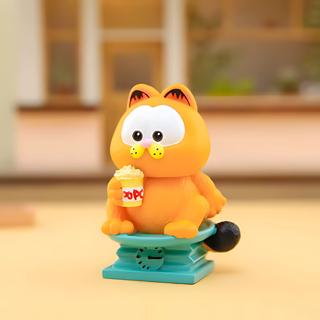 Cada caja contiene un Garfield diferente y no sabrás cuál te tocará hasta que la abras 🎁. Puedes encontrar distintas poses y accesorios, desde Garfield relajado, leyendo, disfrutando de palomitas… ¡o alguna sorpresa especial!